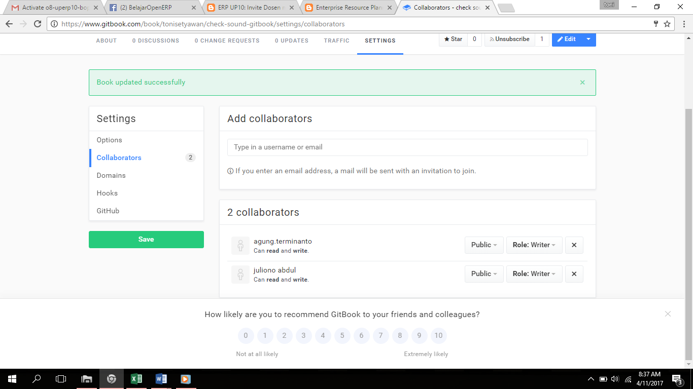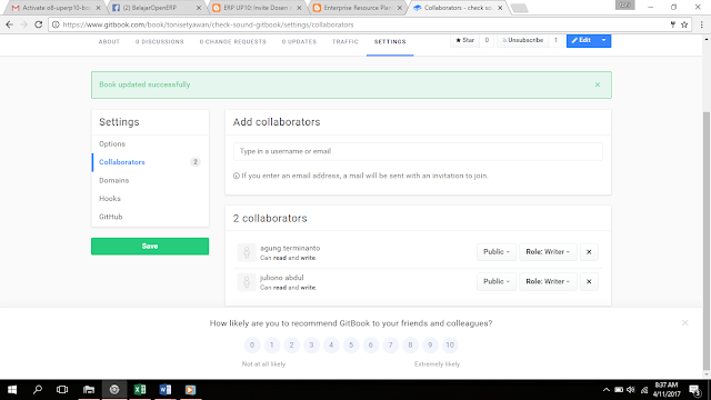 Sekarang saya mausharinglagi terkait invit dosen sebagai“Collaborator”pada GitBook. Luangsugggg…..