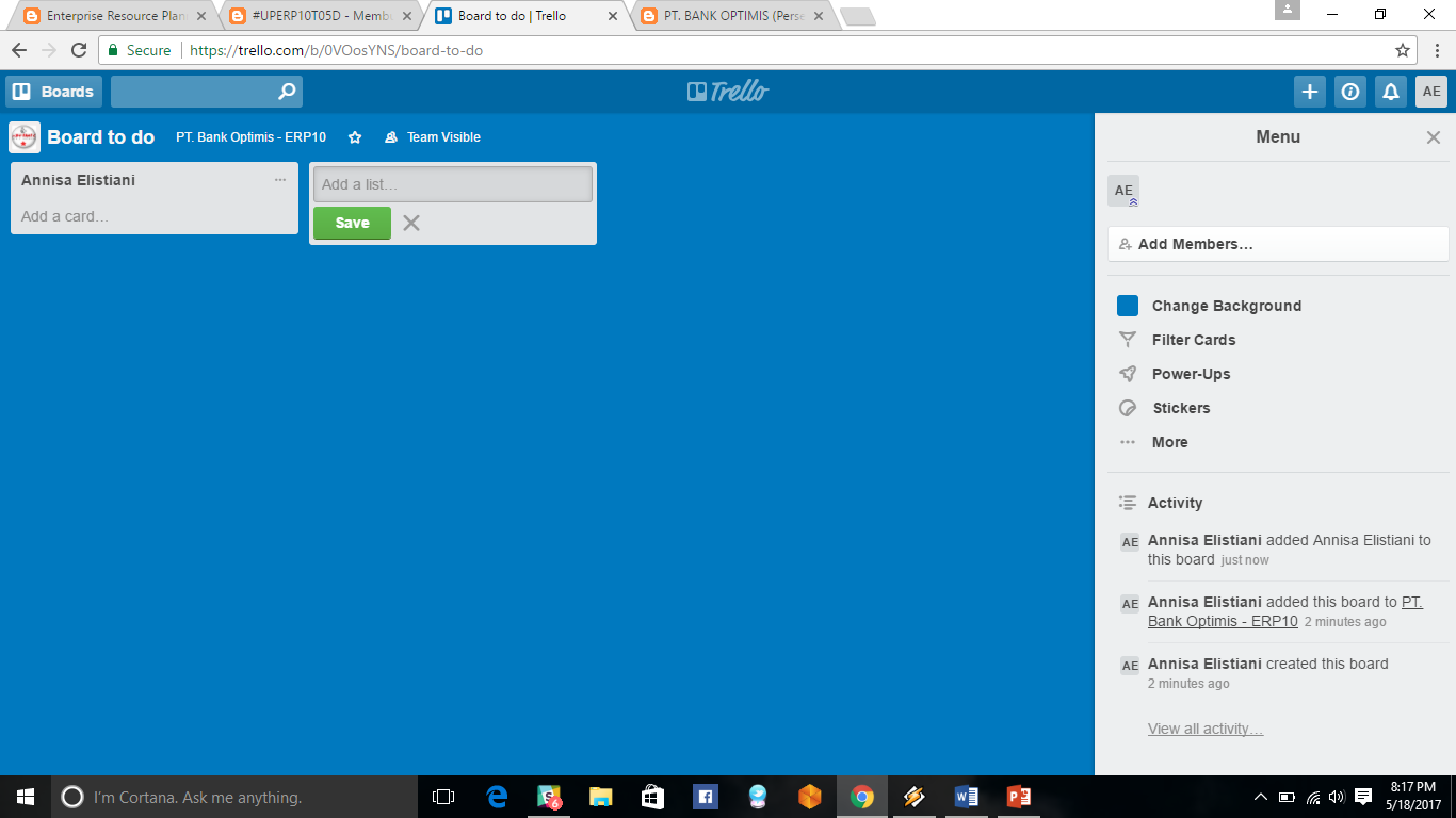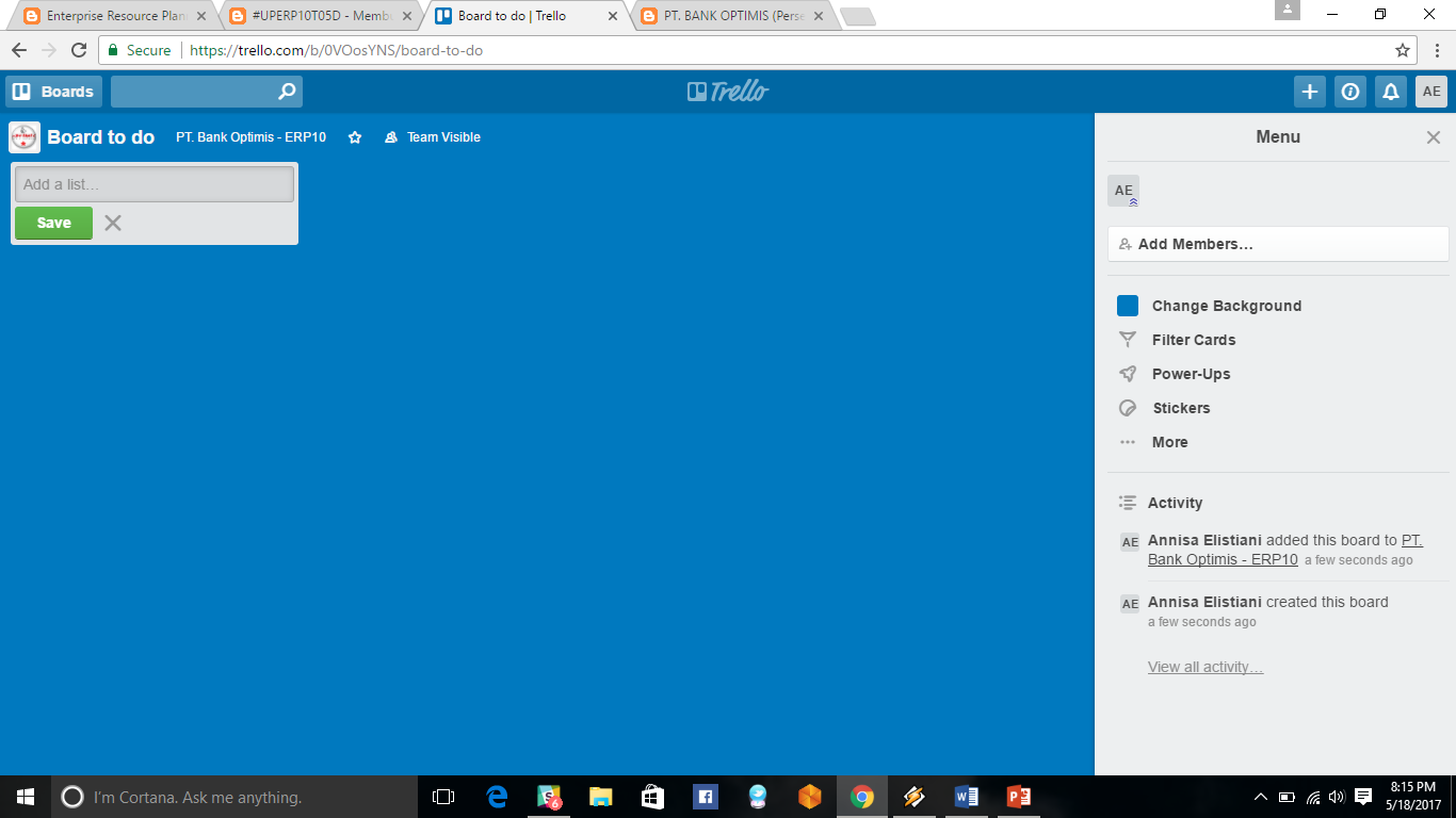 - klik board, kemudian new board "rencana" untuk membuat board baru