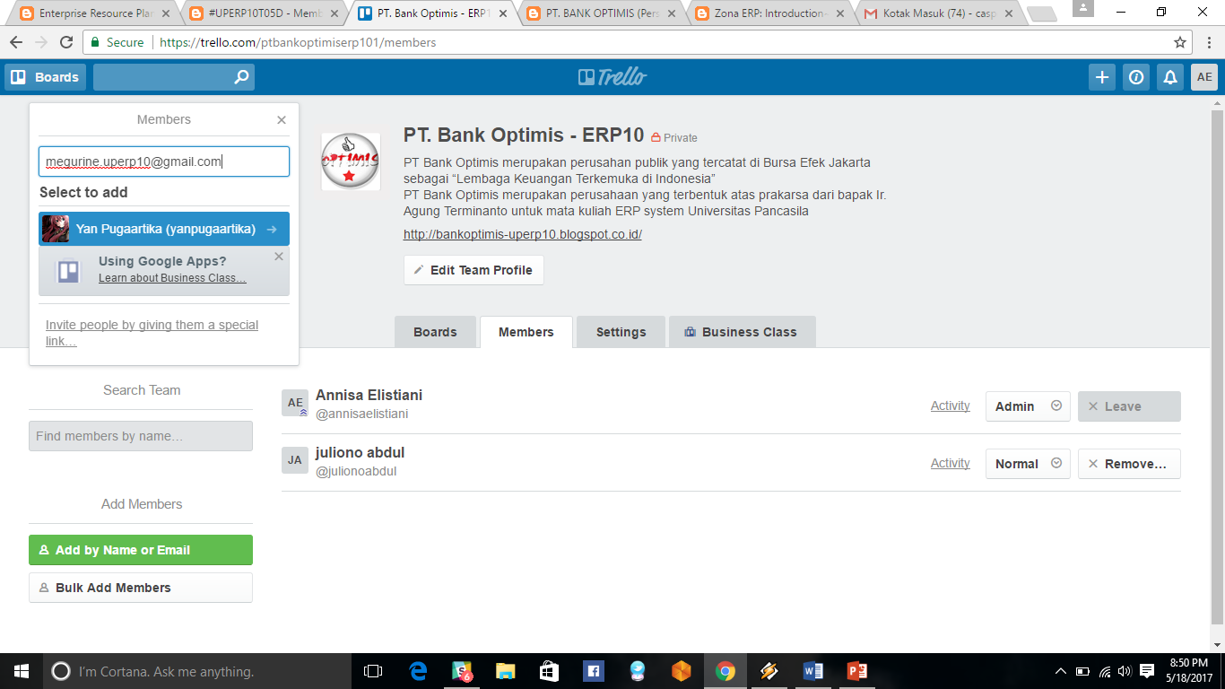 - dan ini adalah anggota kelompok dari PT. Bank Optimis
