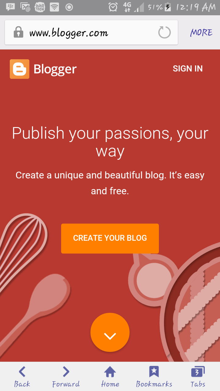 4.selanjutnya membuat akun blogger kelompok, pergi ke blogger.com karena sudah memiliki akun email maka tinggal klik sign in ajah. apabila masih dalam browser yang sama dan email masih terbuka (belum sign out) maka tidak perlu klik sign in, karena sudah dianggap masuk ke blogger, tinggal konfirmasi akun dan membuat isi blognya saja