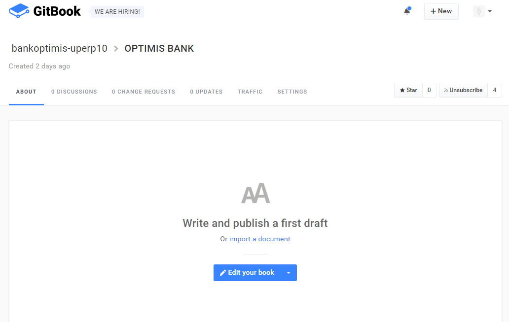 - dan hasilnya akan seperti ini, lalu pilih menu setting untuk memasukkan anggota kelompok untuk bergabung dalam gitbook ini.
