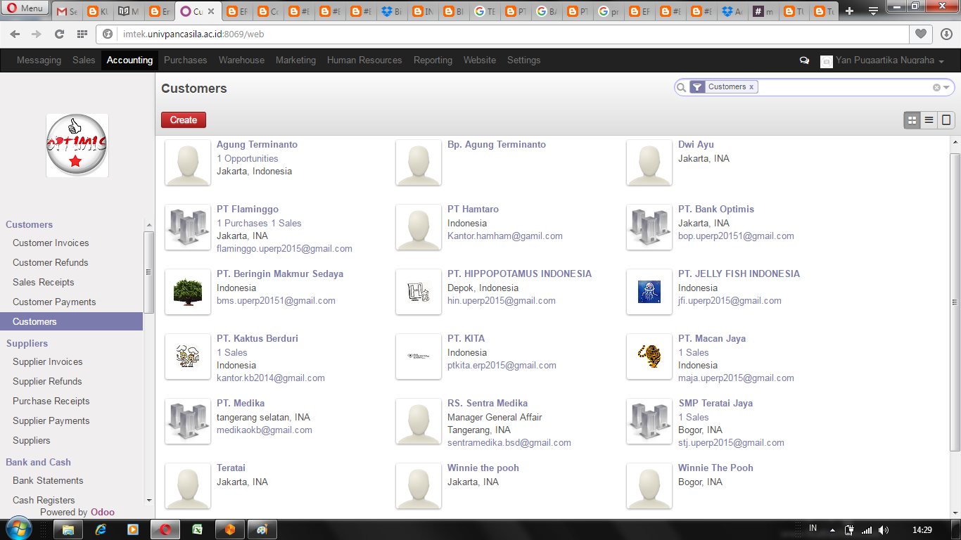 - selanjutnya ke menu customer, pilih customer-create, disini saya akan membuat daftar customer terlebih dahulu yang nantinya akan memudahkan proses invoice dsb. jika sudah klik save