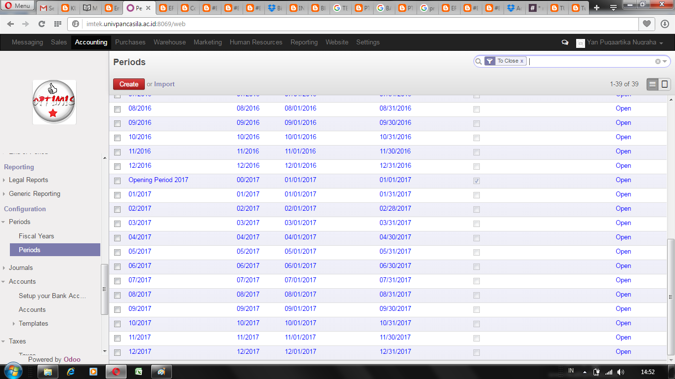 - selanjutnya membuat fiscal year dan periods