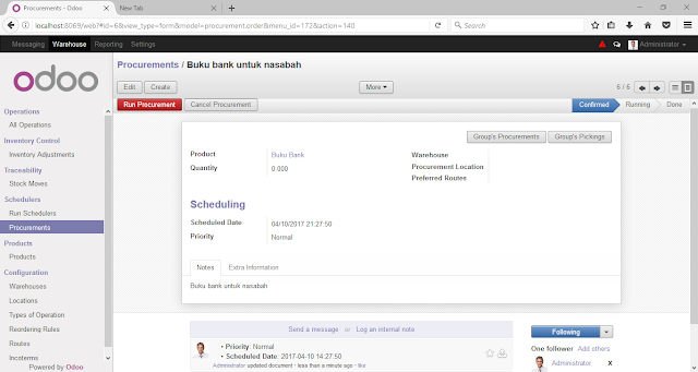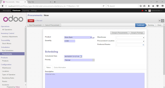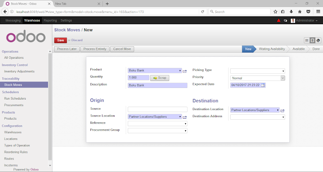 Selanjutnya yang akan saya bahas adalah cara menjalankan modul warehouse tersebut sesuai dengan skenario yang telah disusun.